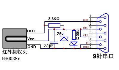 利用電腦串口延長(zhǎng)線插上接收部分,可以說是即插即用,而且支持熱插拔,因?yàn)檫@部分是利用串口上的5,7,8,9針加上穩(wěn)壓二極管供電的,還能驅(qū)動(dòng)一個(gè)發(fā)光二極管作為工作指示燈,效果不錯(cuò)。
