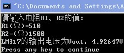 cout<<"LM317的輸出電壓為Vout:"<<Vout<<"V"<<endl;