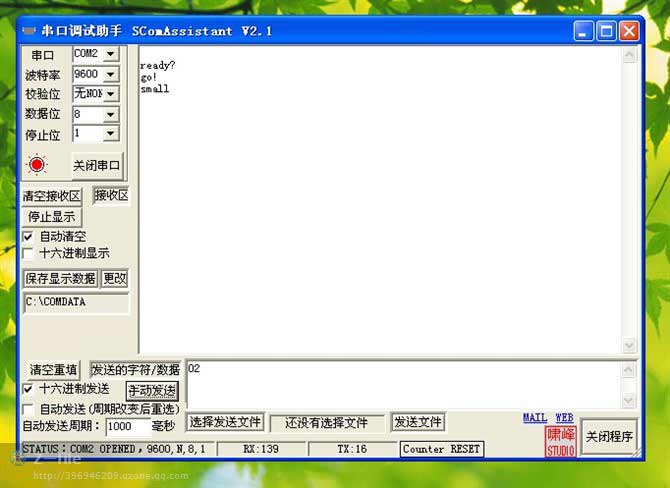 有點遺憾,發送數據的時候這個軟件只能十六進制發,也就是說等等看到0a就是十進制10,0b是11,0c是12,0d是13,0e是14,0f是15。如果把左下角的“十六進制發送”勾去掉,就是用ASCII碼發,會出錯的。而我從單片機發到電腦上的當然是ASCII碼。