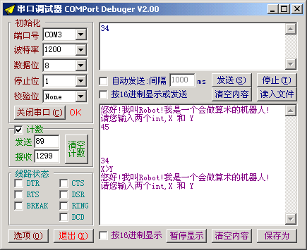 要注意的是,在連接 PC 串行口調試時。發送數字時,發送完一個數字后還要發送一個回