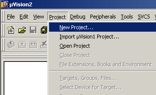 首先當然是運行KEIL軟件,接著按下面的步驟建立您的第一個項目: