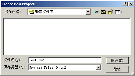 (1)點擊 Project 菜單,選擇彈出的下拉式菜單中的 New Project,如圖 1-2。接著彈 出一個標準 Windows 文件對話窗口,如圖 1-3。在“文件名”中輸入您的第一個 C 程序項 目名稱,這里我們用“test”。“保存”后的文件擴展名為 uv2,這是 KEIL uVision2 項目文件擴展名,以后能直接點擊此文件以打開先前做的項目。