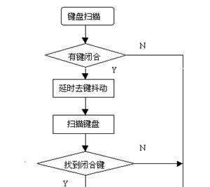 去除鍵抖動。當(dāng)檢測到有鍵按下后,延時一段時間再做下一步的檢測判斷。