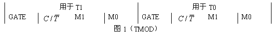 從圖1中我們能看出,TMOD被分成兩部份,每部份4位。分別用于控制T1和T0,至于這里面是什么意思,我們下面介紹。