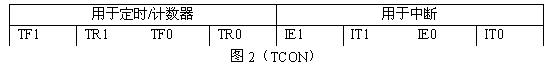 從圖2中我們能看出,TCON也被分成兩部份,高4位用于定時(shí)/計(jì)數(shù)器,低4位則用于中斷(我們暫不管)。而TF1(0)我們上節(jié)課已提到了,當(dāng)計(jì)數(shù)溢出后TF1(0)就由0變?yōu)?。原來(lái)TF1(0)在這兒!那么TR0、TR1又是什么呢?看上節(jié)課的圖。