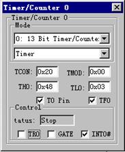 設定定時初值等,點擊選中 TR0,status 后的 stop 就變成了 run,如果全速運行程序,此時