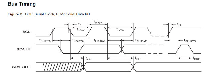 其中起始信號:在SCL為高電平時,SDA電平由高變低,且高電平SDA高電平持續時間要大于4.7us,在SCL由高電平變低時,SDA的低電平持續時間要大于4us