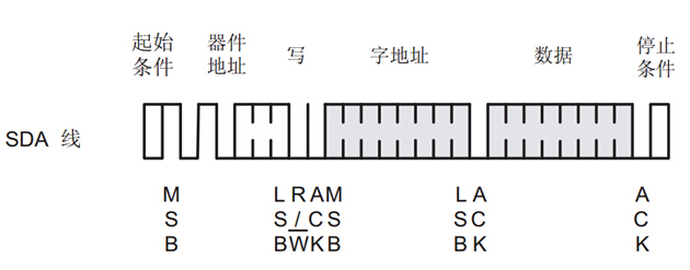 然后再發送要寫入數據的地址,收到應答再寫入數據,最后是停止信號