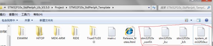 IAR建好工程的模板)里的stm32f10x_conf.h , stm32f10x_it.c ,