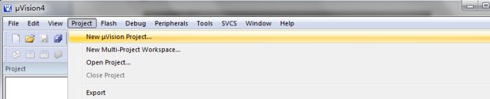 4、打開keil uvision4 MDK , 在菜單欄里點擊project 選擇 new uVision project