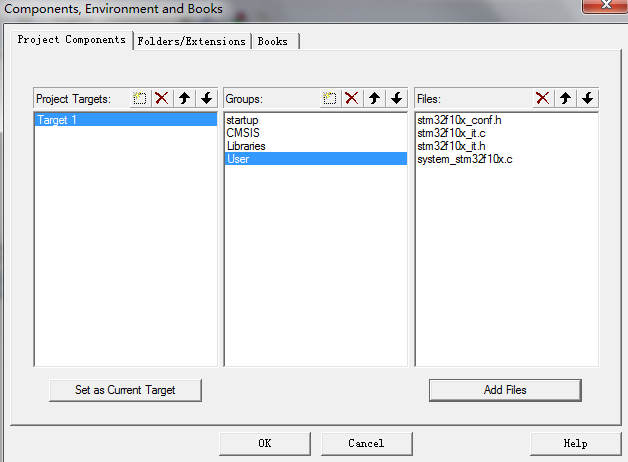 選擇CMSIS 在Files框下將CMSIS文件夾的core_cm3.c添加進去;