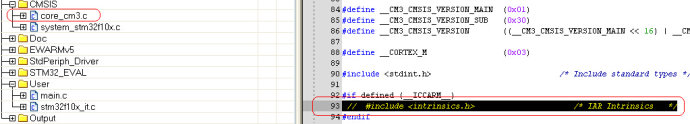 3.進入“core_cm3.c”,注釋掉“#include”頭文件。