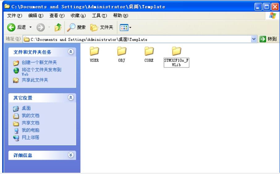 1。建四個文件夾 USER OBJ CORE FWLIB如圖: