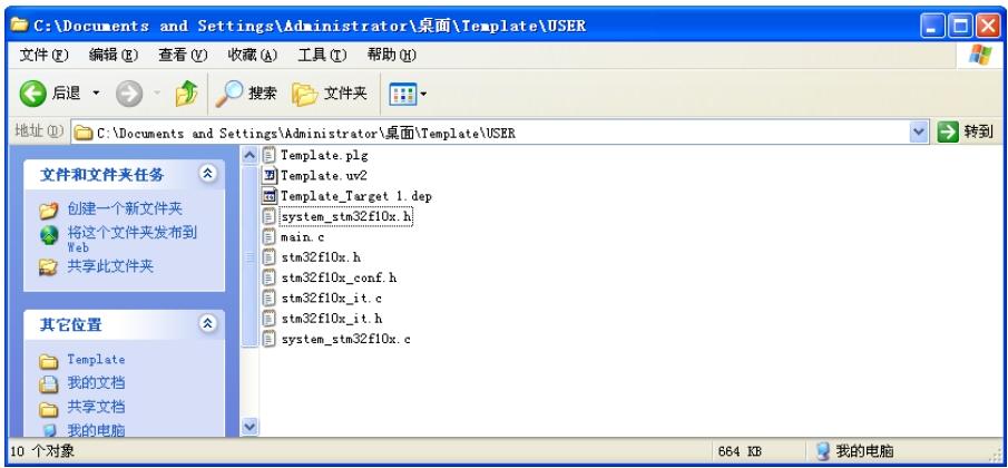 其main.c stm32f10x_conf.h stm32f10x_it.c stm32f10x_it.h system_stm32f10x.c