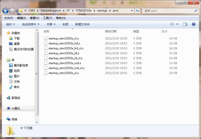 3.在CORE中,放core_cm3.c core_cm3.h startup_stm32f10x_hd.s